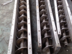 GX型螺旋输送机俗称绞龙,是矿产、饲料、粮油、建筑业中用途较广的一种连续输送设备,它利用旋转的螺旋将被输送的物料沿固定的机壳内推移而进行输送工作,其情况就象螺杆旋转时被卡住的螺母,只能沿螺杆作平移运动一样,而致使物料不与螺旋一起旋转的力是物料的重力和对机壳的摩擦力。从输送物料位移方向的角度划分,螺旋输送机分为水平式螺旋输送设备和垂直式螺旋输送设备两大类型,主要用于对各种粉状、颗粒状和小块状等松散物料的水平输送和垂直提升,该螺旋输送机不适宜输送易变质、粘性大、易结块或高温、怕压、有较大腐蚀性的特殊物料。